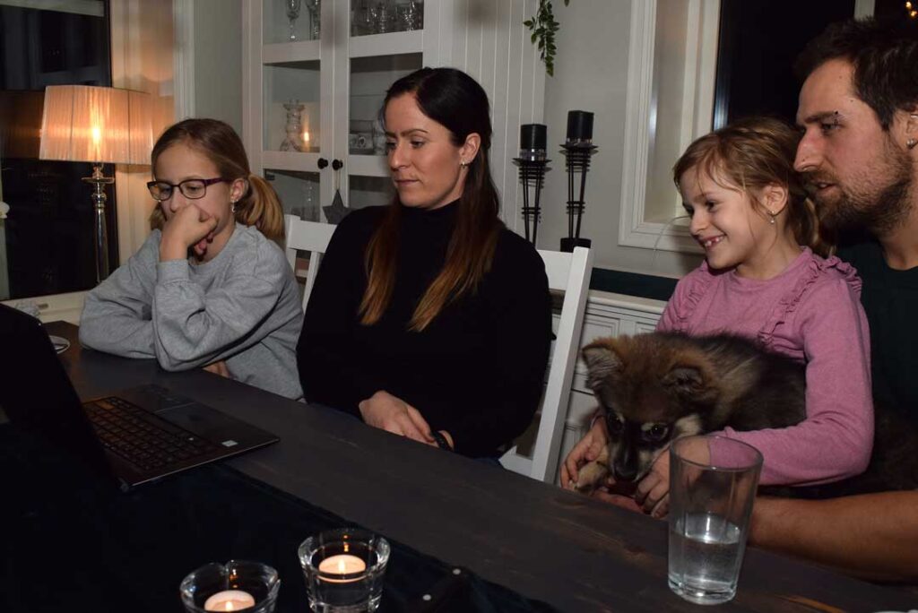 Madelen (10), som blir neste generasjon skogeier, kommer ned og vil se film om treslag. Den har mye info, men hun er skarp. Hun husker og gjetter riktig på quiz’en. Nå kommer lillesøster og valpen også for å være med.