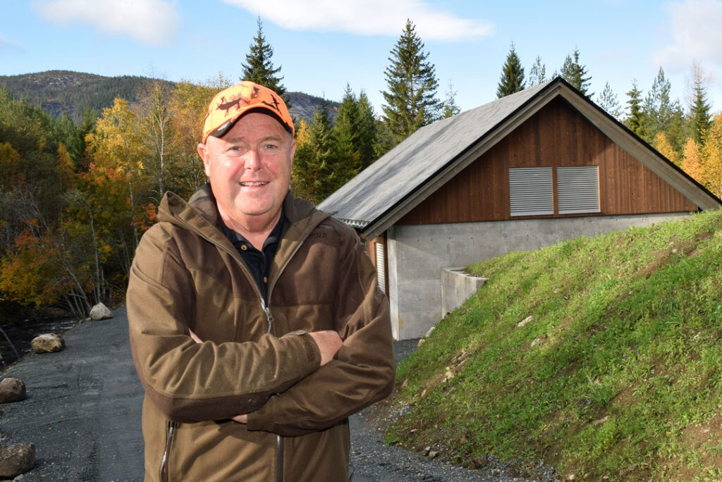 – Det er blitt et stort småkraftverk som skal produsere 10 millioner kilowattimer, konstaterer Tor Bendik foran kraftverket, som ligger i enden av et fall på 240 meter.