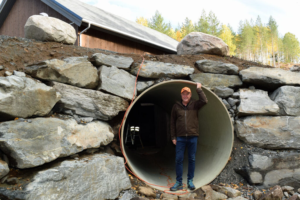 Tor Bendik får lett plass i de største rørene. I bakgrunnen skimtes kraftverket.