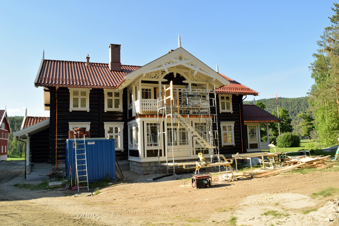 – I to år har oppbyggingen tatt all vår tid, men vi må gjøre det beste ut av det. Vi var veldig bevisst på at vi ville bygge i laft. Arnt Darrud har tatt utgangspunkt i et bilde av huset fra 1800-tallet. Som erstatning for de to stabburene, har han tegnet et eldhus med en mer praktisk romløsning vi kan ha glede av.