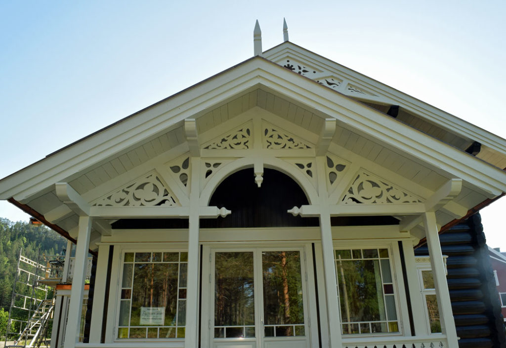 På sensommeren skal kårkallen flytte tilbake til det nyoppførte huset, som er gjenskapt i samme sveitserstil som det opprinnelige som brant. Huset i laft med vakre detaljer, er tegnet av arkitekt og kunstner Arnt Darrud i Sauherad.