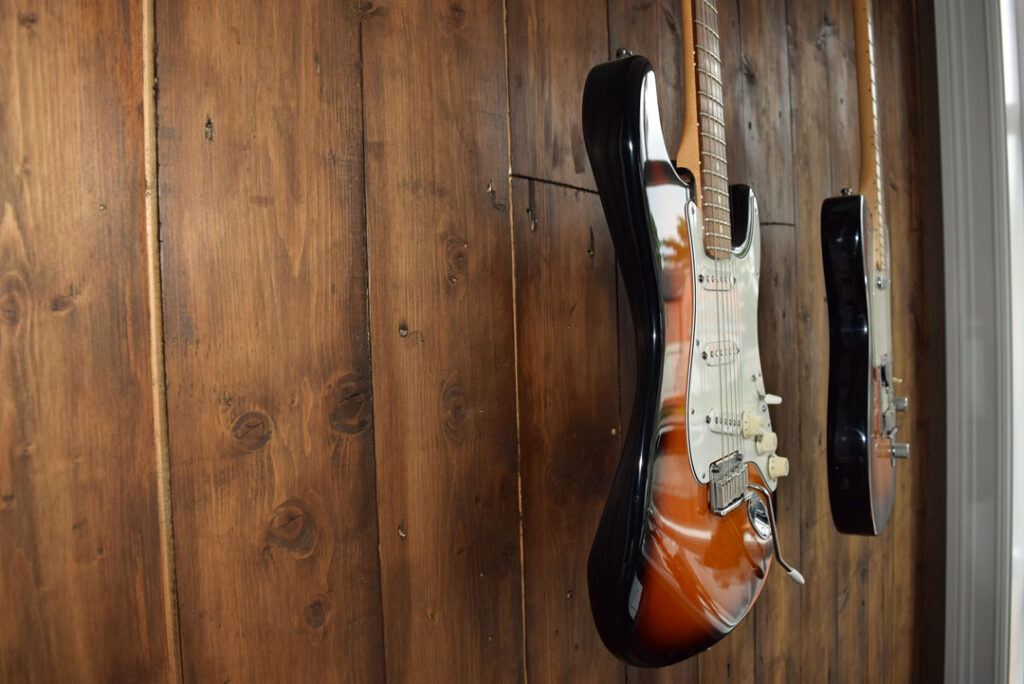 – Plankene er gjenbrukt til vegger i stue og gang. Jeg synes det er kult og kjempemorsomt å bruke plankene om igjen og gjøre dem synlige.