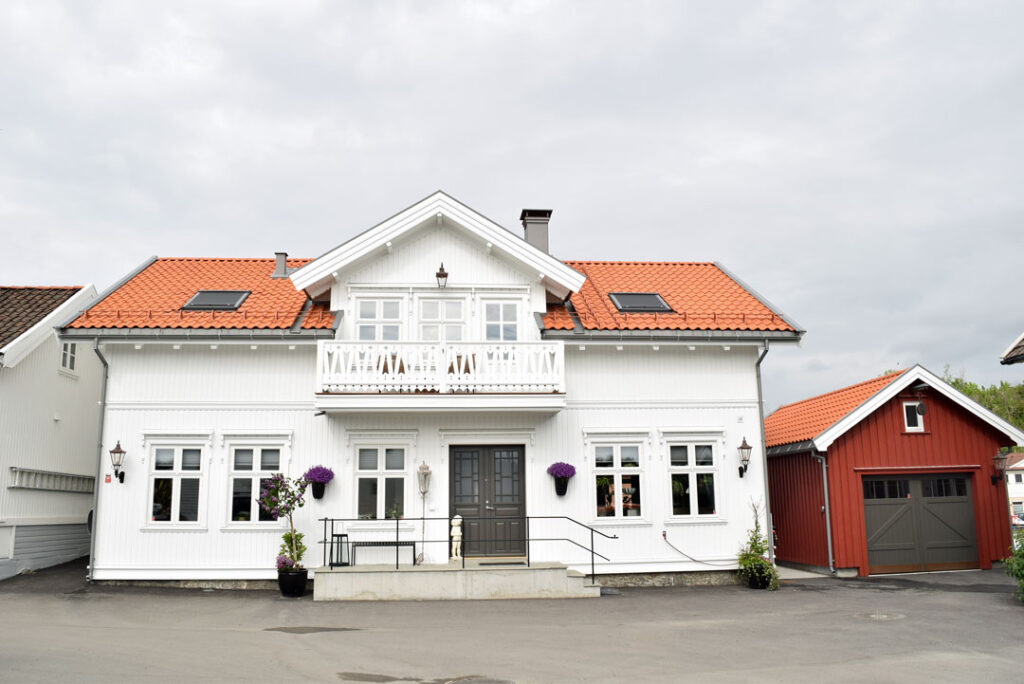 I Langesund i Bamble ligger et nyrenovert sveitserhus. Det er vakkert og nymalt med profilerte detaljer. Beliggenheten er rett og slett sommeridyll med egen brygge. Her bor familien Mustad, som kunne flytte inn i et totalrenovert hus i mai i fjor etter en intens byggeperiode.