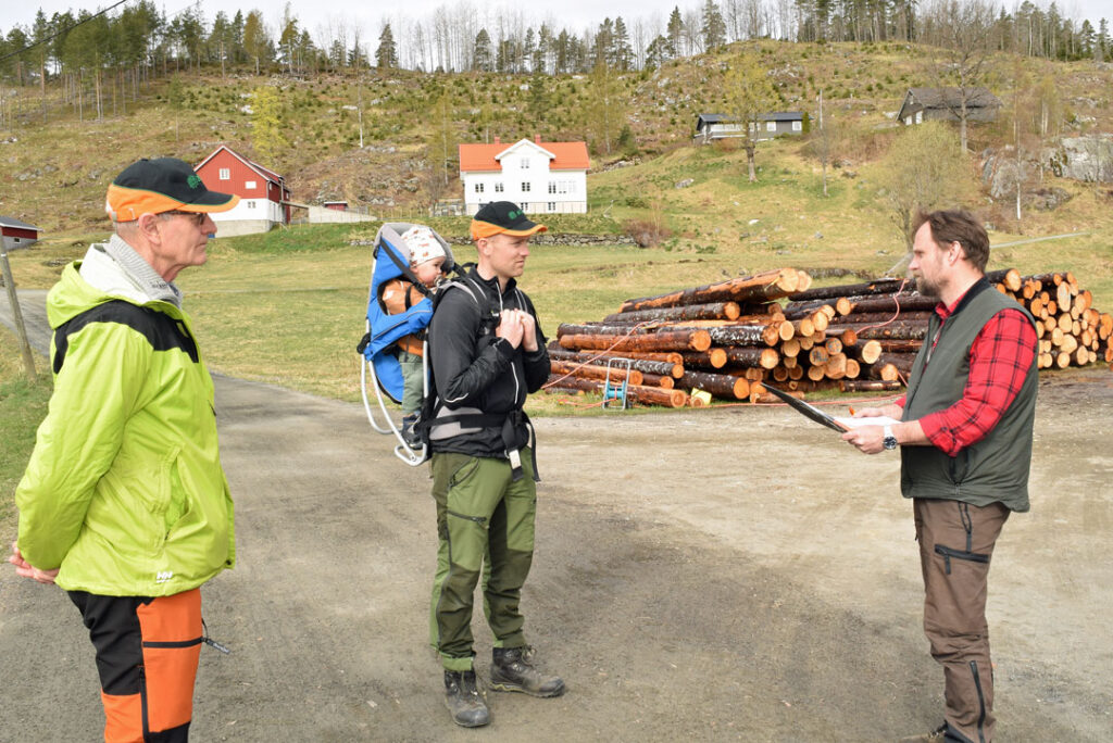 I dag har han skogbruksleder Grunde Bjorvatten fra AT Skog på besøk sammen med revisor Johan Landorf, som skal sjekke at hogsten er utført riktig.