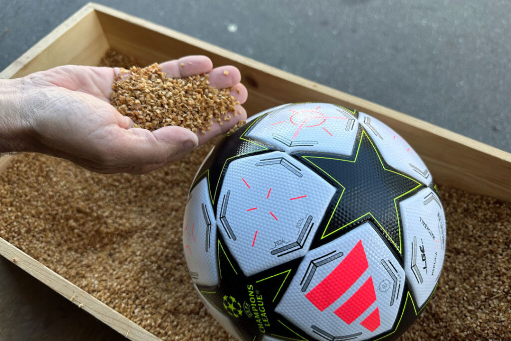 Folks oppmerksomhet ble fanget med granulat av kortreist bjørk, som kan erstatte plastkulene på kunstgressbaner. Med over 40 000 kunstgressbaner i Europa (ifølge Google), er produktet til Goe Production i Rogaland et framtidsrettet produkt.
