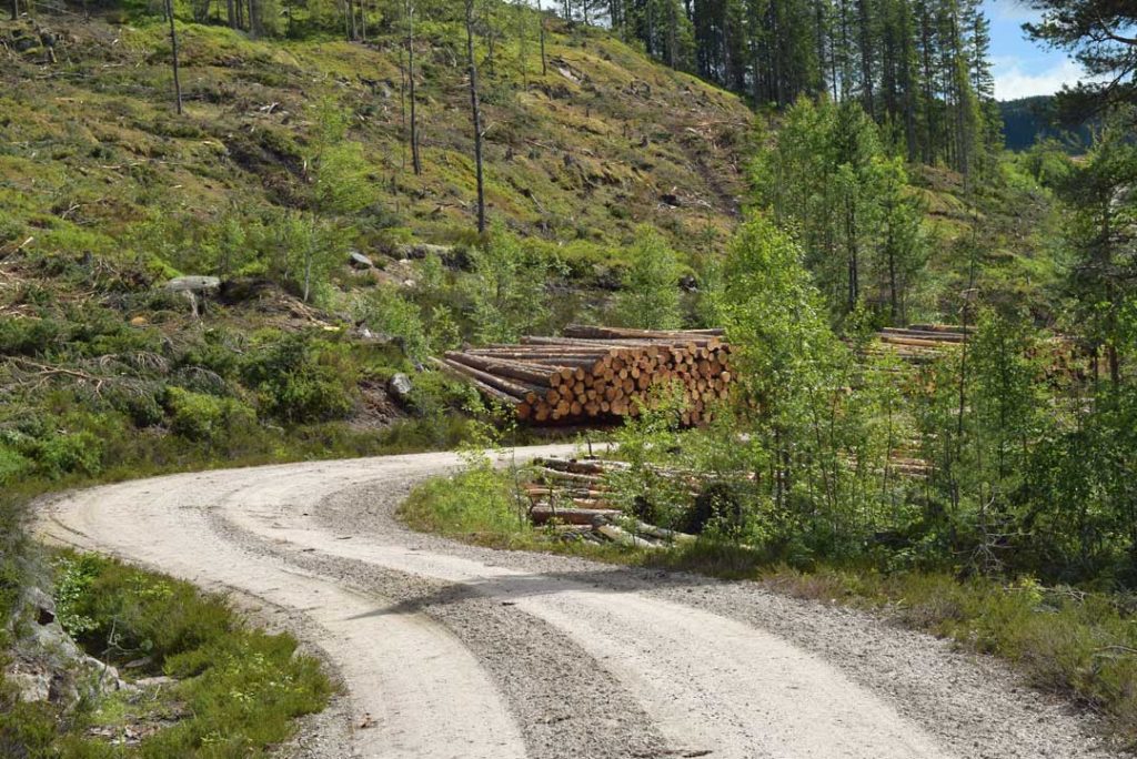 – De siste årene har vi hogd og tatt ut enormt mye tømmer. Det var jo hele meningen med veien, sier Eiken.