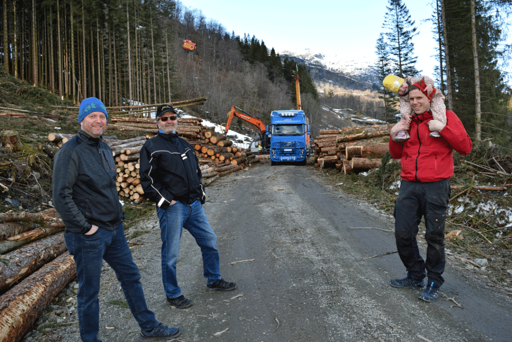 – Veien inn til hogstområdet var fra 1934. I samarbeid med naboeiendommer har vi bygd ny vei. Veien har gjort det mulig å ta ut 5500 kubikk tømmer hittil, forklarer Inge Atle.