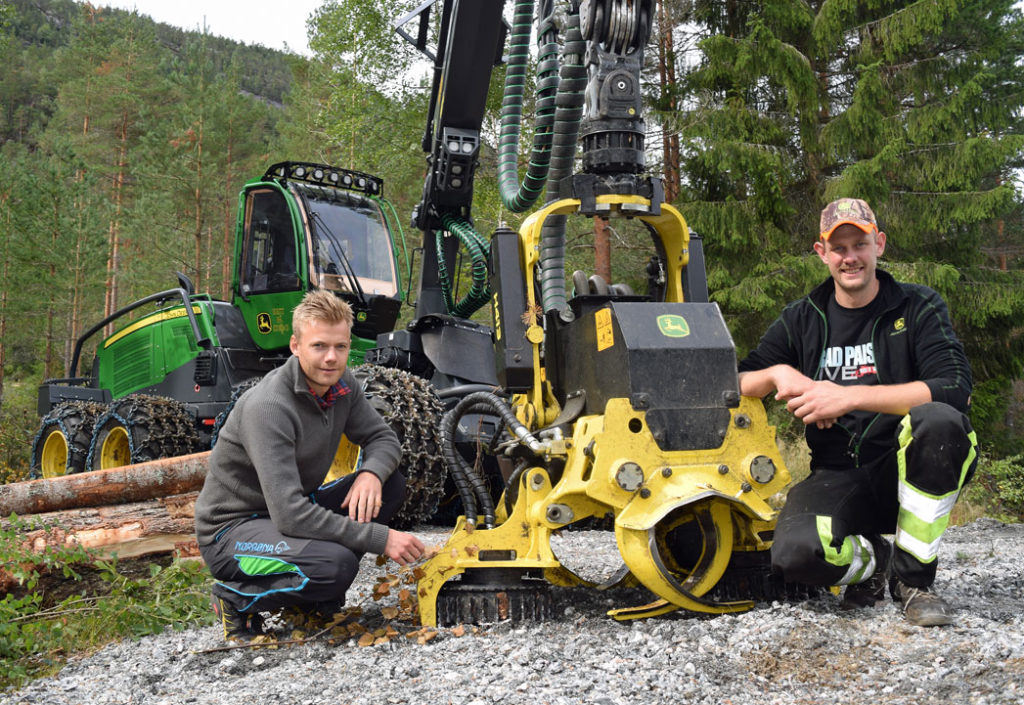 – Skogsarbeid er kjempemoro, rett og slett. Jeg husker ikke de kleine dagene på jobb, sier Knut Erlend Mevatne, som kjører tømmeret ut av skogen med lassbærer. Fra han var liten, har drømmen vært å jobbe med maskiner og skog.