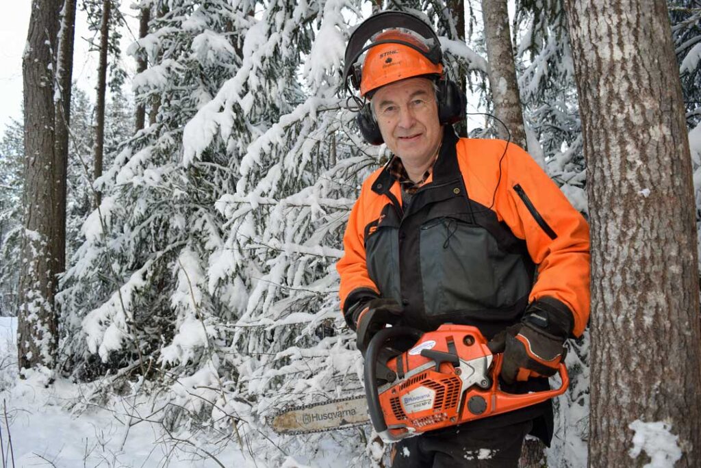 Vindfallhogst er livsfarlig arbeid.  Han har selv vært fastklemt under et tre i 15 minus.