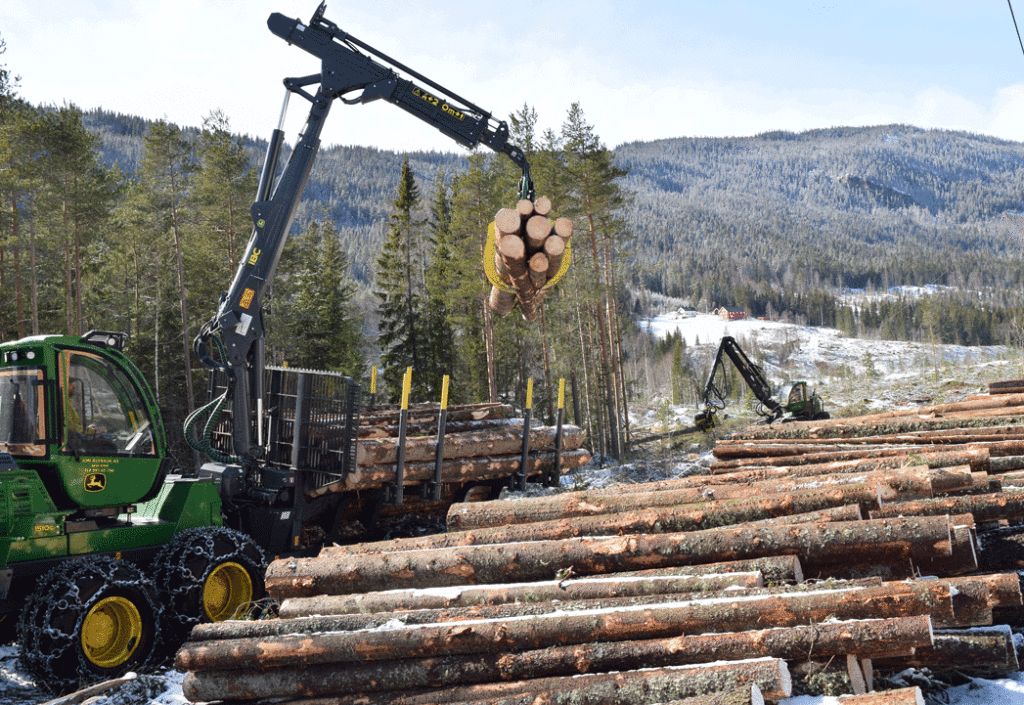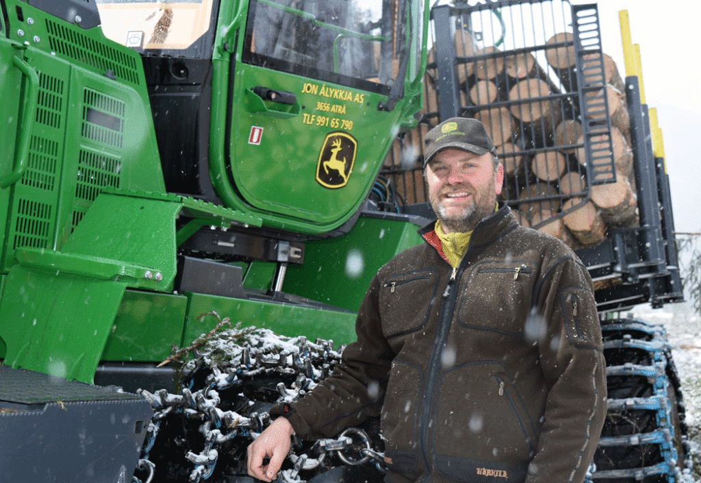 Det er den femte hogstmaskinen han har kjøpt i årene som selvstendig næringsdrivende. For bare et par dager siden kom den splitter nye lassbæreren fra John Deere, som Jan kjører.