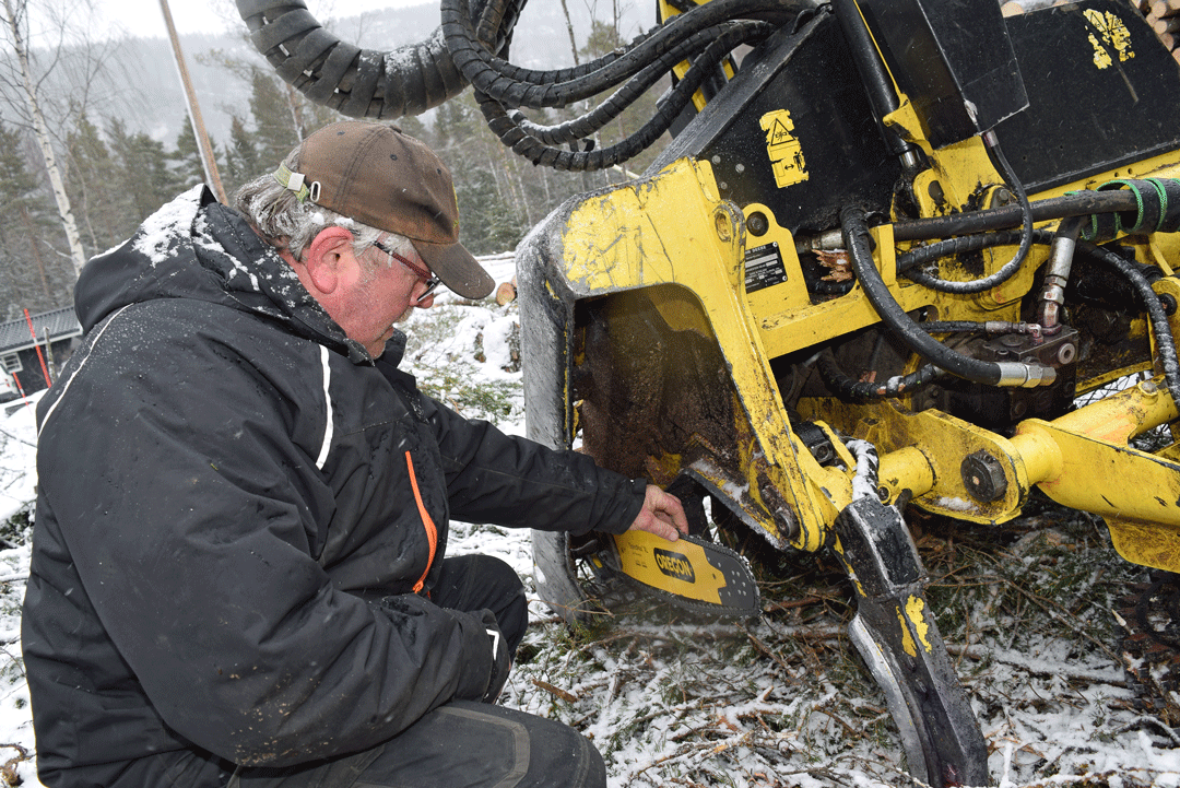 – Om pandemien nå gjør at sagbrukene stenger, så er vi først i verdikjeden til å bli rammet. Hvis industrien stopper, blir det verre, konkluderer Jon med termoskoppen i neven foran hogstmaskinen.