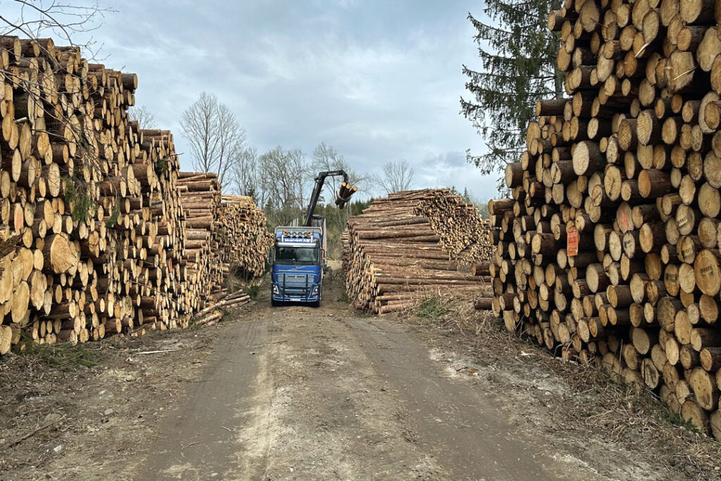 Han har akkurat målt inn tømmerlasset hos Bergene Holm og slått av en prat med en ansatt ved målebua.