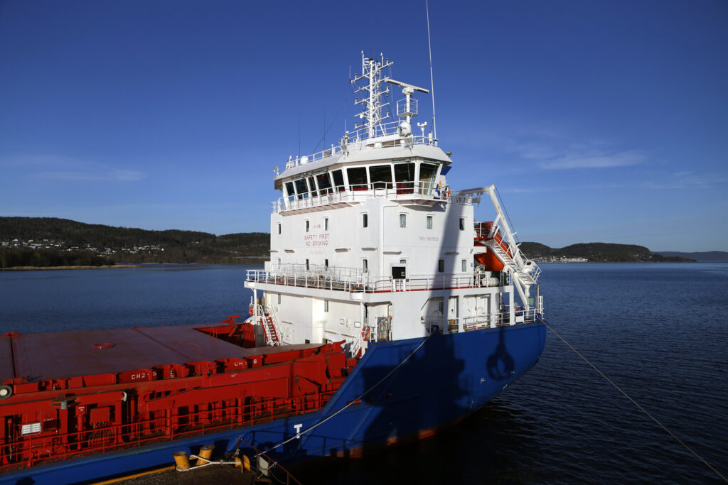 – Vi kan laste og losse tømmer og annet gods ved hjelp av den elektriske gravemaskinen vi har om bord. Den elektriske fremdriftsmotoren på 900 kilowatt er i bruk når skipet går inn og ut av havn. Det betyr at skipet da kan opereres utslippsfritt og uten bruk av bunkersolje. Men på lengre strekninger blir det en kombinasjon av elektrisk- og dieselmekanisk fremdrift, såkalt hybrid fremdrift, forteller Matre.