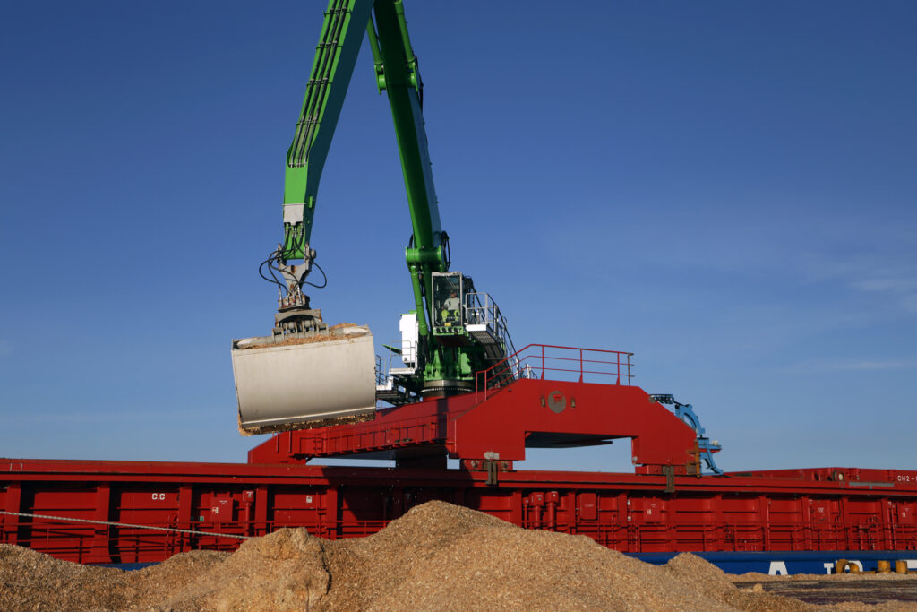 – Den kan laste og losse raskere fordi den har lengre rekkevidde, større kraft og får med seg mer tømmer i kloa eller flis i grabben. Det er bra for tømmeret og flisen, som er ferskvarer, at lastingen går raskere. Det er også bra for rederiet ettersom havneoppholdene blir kortere, sier Kjersti Denver.