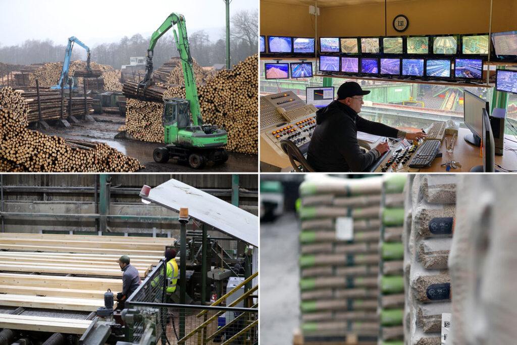 – I tillegg til trelast har de en stor produksjon av trepellets, bortimot 300 000 tonn i året. De produserer også strøm og varme av det som blir til overs av biomassen. Mye av denne CO₂-nøytrale energien bruker de selv på sagbruket, men overskuddet går inn i den offentlig tilgjengelige kraftforsyningen, forteller Kjersti Denver.