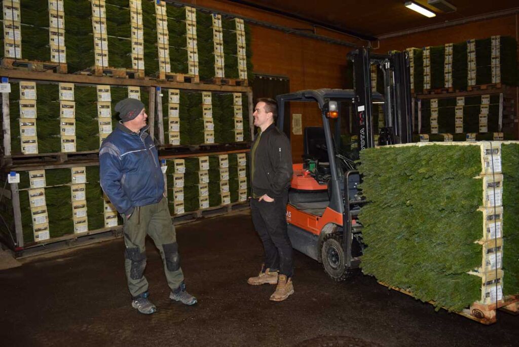 – Det blir noen runder med opptining, konstaterer Even Nordbø, som er fagarbeider hos Norgesplanter på femte året. Når plantene har tinet, kjøres de inn på kjøl der de oppbevares i pluss 1 grader.