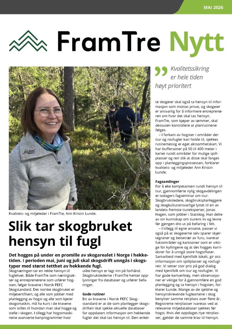 Her kan du lese vårt nyhetsbrev FramTre Nytt, som kommer ut med magasinet Skog. Magasinet Skog sendes ut til alle våre medlemmer 8 ganger i året.