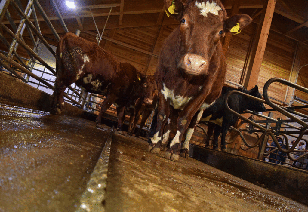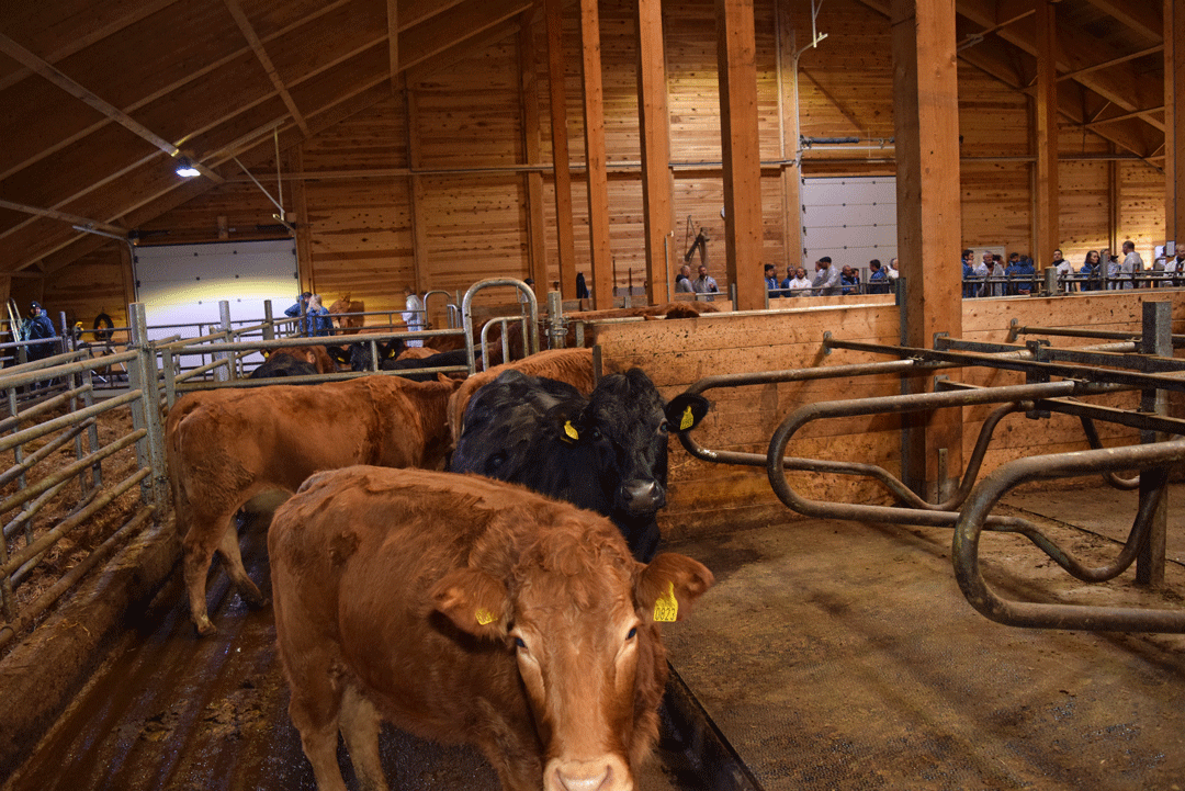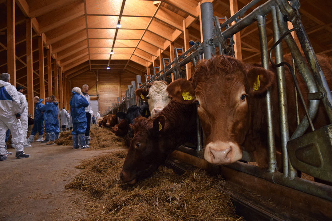 Fjøset på 1800 kvadratmeter sto ferdig i desember. Mens Terje er opptatt med å fortelle gjestene om valg og løsninger rundt oppføring av nytt fjøs, åpner Elin opp porten til kuene. Flekken og Klara er blant favorittene, som lar seg klappe og fotografere.