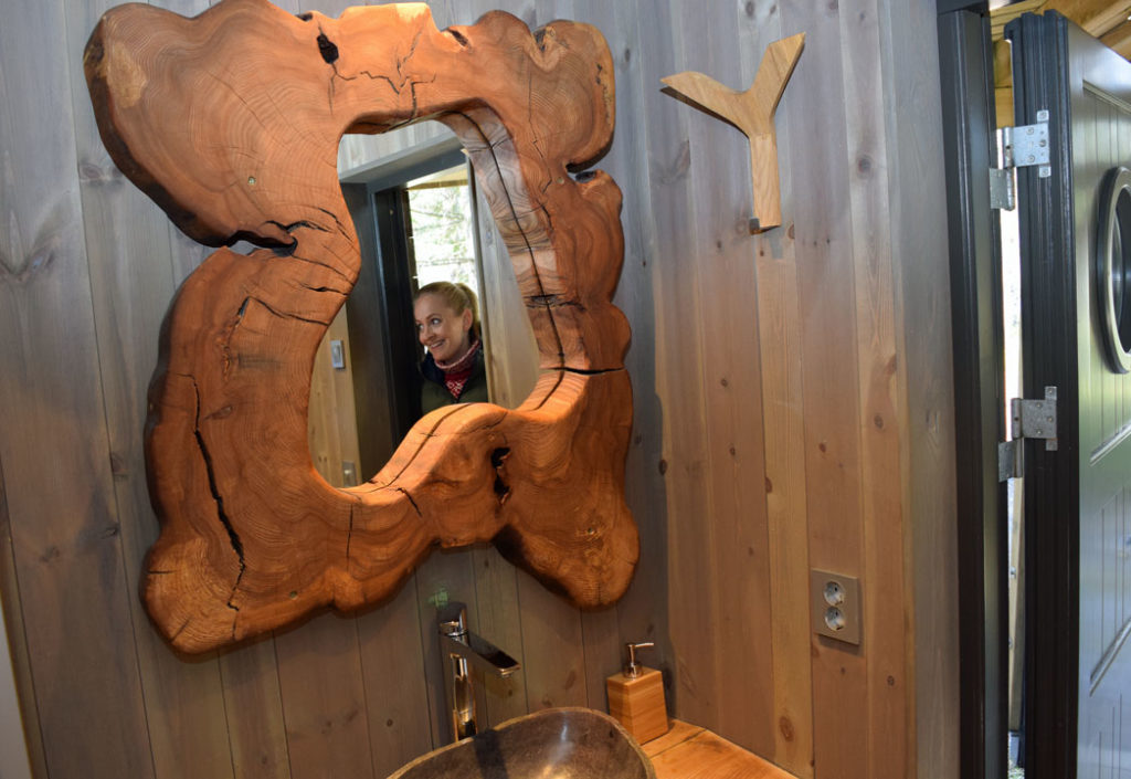 – Da de to neste hyttene ble bygget, var bookingkalenderen full. Tidspress gjorde at jeg ikke rakk å skape så mye selv, men jeg fikk laget en speilramme og et stuebord fra et 200 år gammelt tuntre i alm fra nabogården.