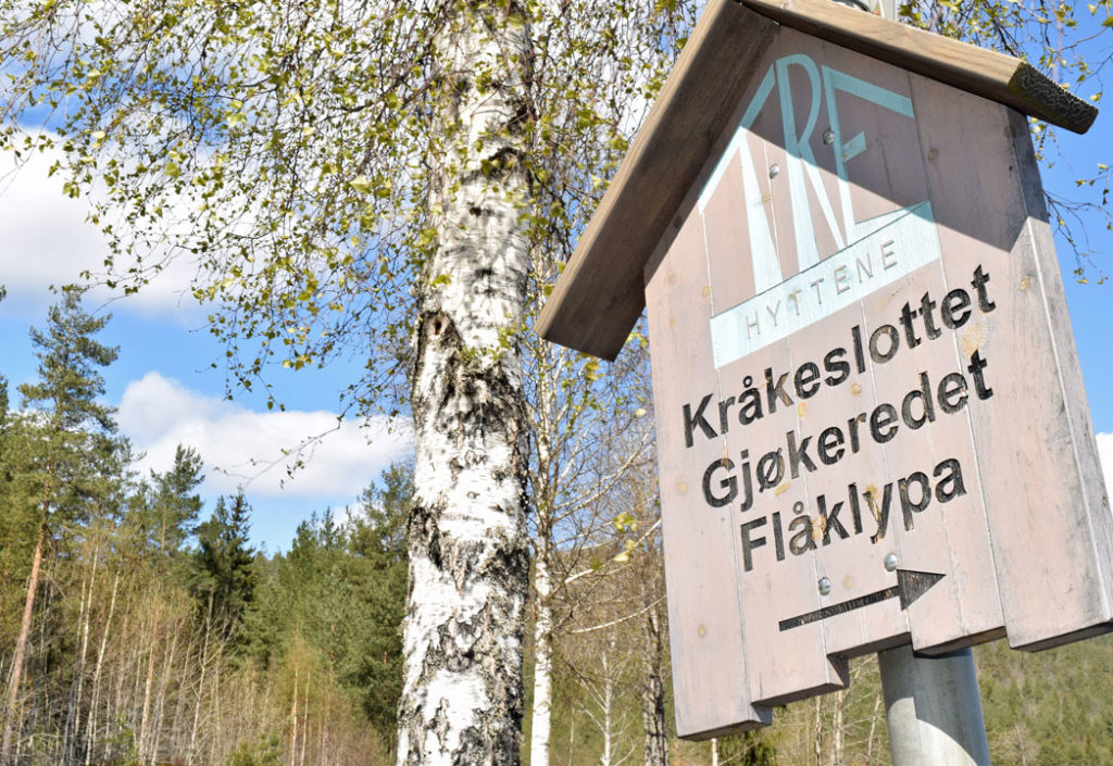 Den sørvendte lia som egnet seg til tretopphytter, fant de en mil fra egen gård. Der kan du nå bo i Flåklypa eller Gjøkeredet, se kvistene fra furuene piske mot rutene, høre den søvndyssende knirkingen fra trær som gynger og våkne til en fantastisk utsikt der både fugler og elg kan passere i ro og mak.