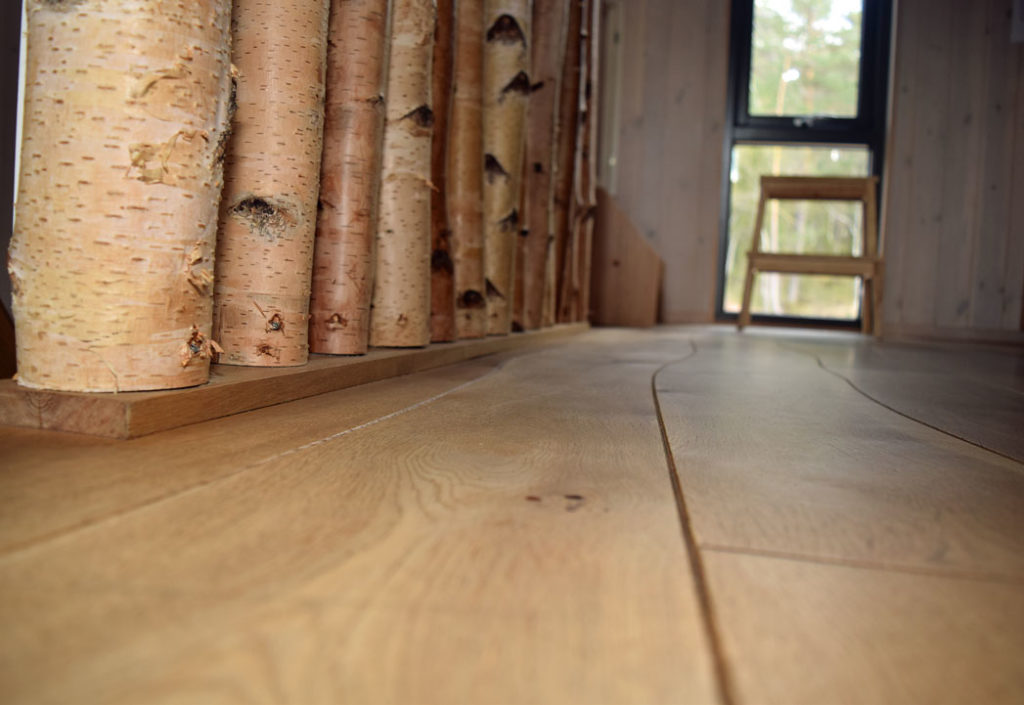 – Kjøkkeninnredningen er også av tre fra egen skog. Den er tegnet og bygd av snekkerfirma og Jens, forklarer Åse Kristine.
