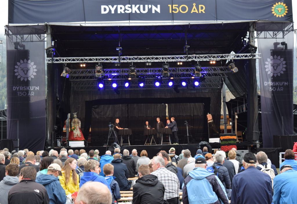Lørdag ettermiddag fulgte rundt 200 mennesker skogdebatten fra hovedscenen på Dyrskuplassen. Leder av Energi og Miljøkomiteen, Ola Elvestuen (V), Stein Lier-Hansen fra Norsk Industri, Kåre Gunnar Fløystad fra miljøstiftelsen Zero, Olav A. Veum fra Norges Skogeierforbund og Petter Ellefsen fra Vekst i Grenland diskuterte «Det grønne skiftet. Hva venter vi på? Næringa er klar, men politikerne nøler». Heine Skårdal Hagen (3) fra Drangedal droppet skogdebatten til fordel for god utsikt fra hogstmaskinen på Skogtunet.