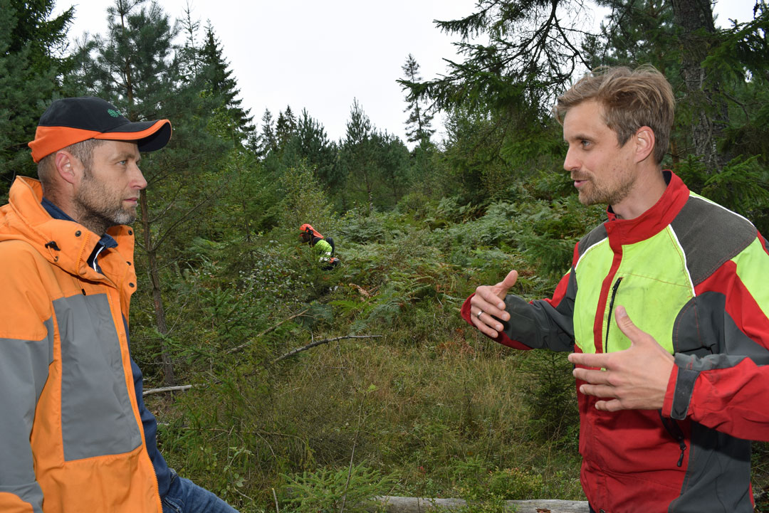 Oppslagsbilde: Skogsarbeider Hubert Kondrak (til v) og skogkulturentreprenør Tøger Skolem i Frem Skog.