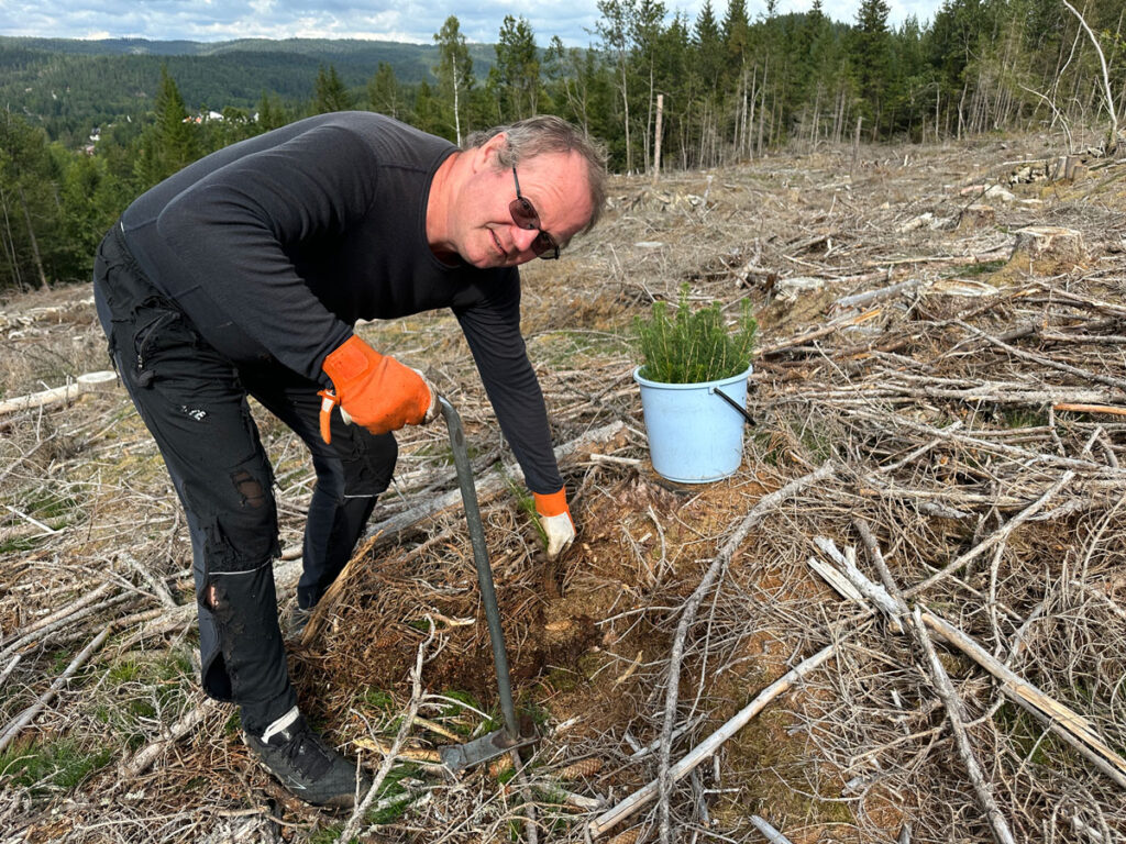 Oppslagsbilde: Anders Gustav Birkeland planter i egen skog. Les hele saken om Anders her.