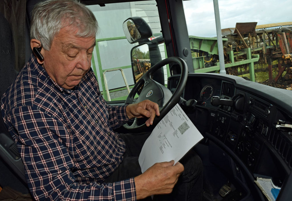 – Jeg begynner seint til å være tømmerkjører. Noen sjåfører begynner klokka halv fire på morran, men jeg spiser og leser avisa først. Så drar jeg hjemmefra halv sju.