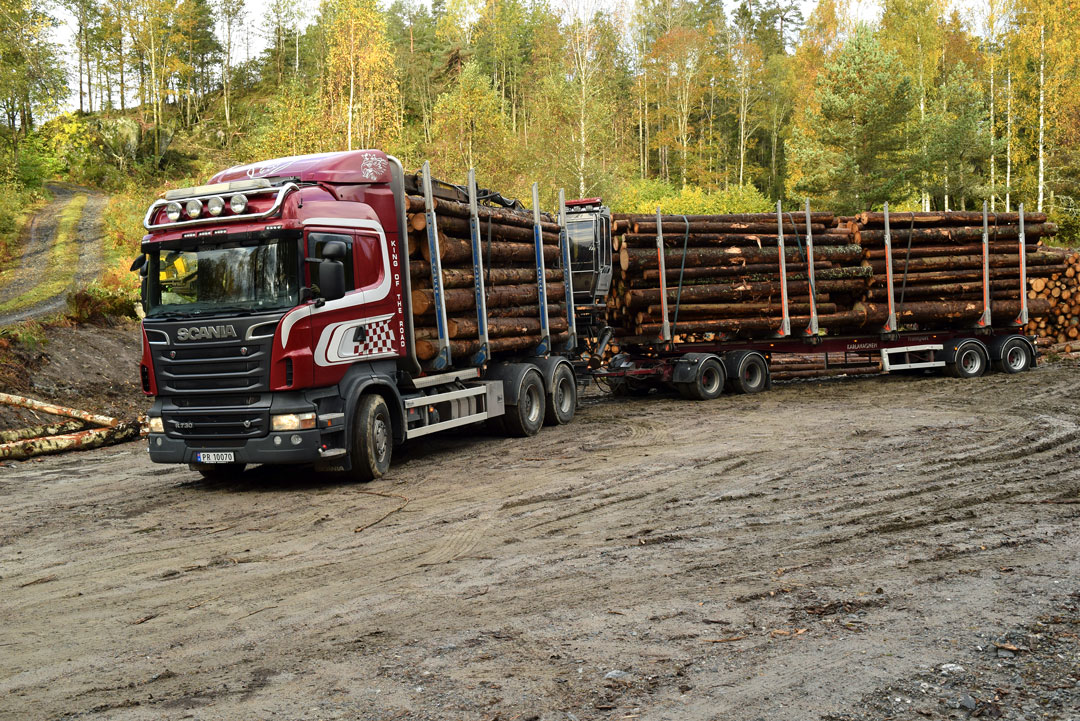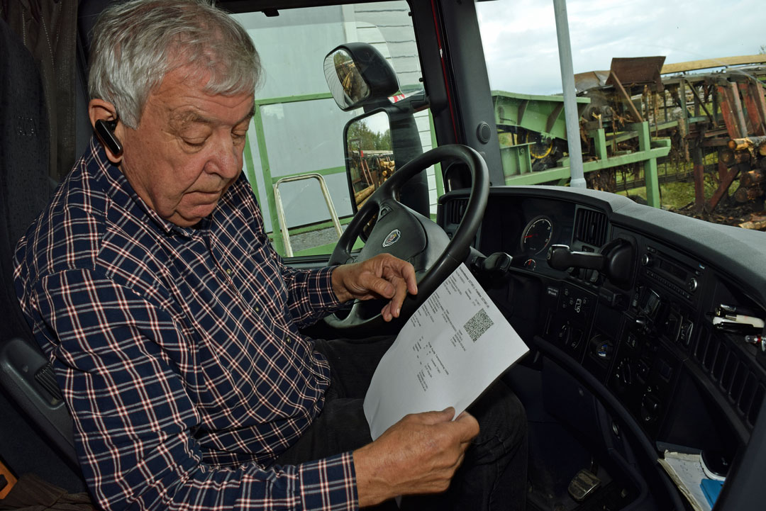– Jeg begynner seint til å være tømmerkjører. Noen sjåfører begynner klokka halv fire på morran, men jeg spiser og leser avisa først. Så drar jeg hjemmefra halv sju.