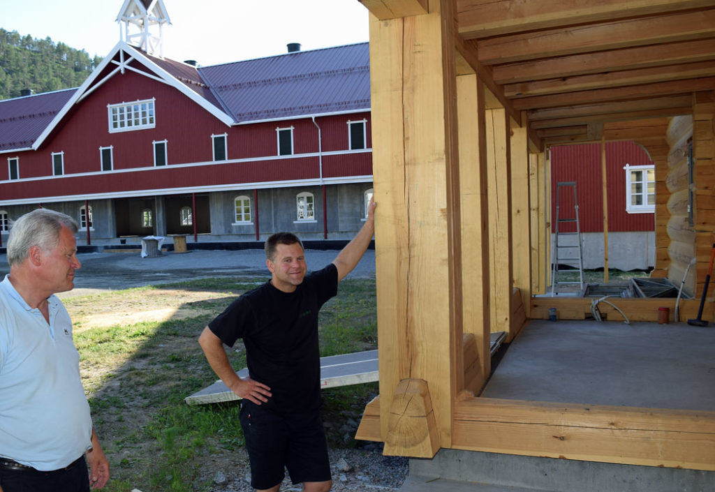 – Tinnoset Sag har samlet de største dimensjonene i tømmerstokker til eldhuset. Dyktige lokale håndverkere har vært engasjert i byggingen, forklarer Christian senior.
