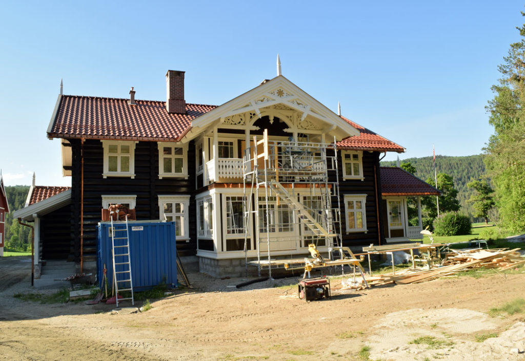 – I to år har oppbyggingen tatt all vår tid, men vi må gjøre det beste ut av det. Vi var veldig bevisst på at vi ville bygge i laft. Arnt Darrud har tatt utgangspunkt i et bilde av huset fra 1800-tallet. Som erstatning for de to stabburene, har han tegnet et eldhus med en mer praktisk romløsning vi kan ha glede av.