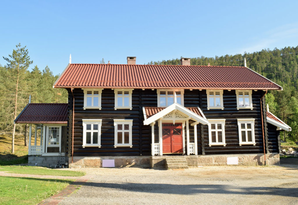 På sensommeren skal kårkallen flytte tilbake til det nyoppførte huset, som er gjenskapt i samme sveitserstil som det opprinnelige som brant. Huset i laft med vakre detaljer, er tegnet av arkitekt og kunstner Arnt Darrud i Sauherad.