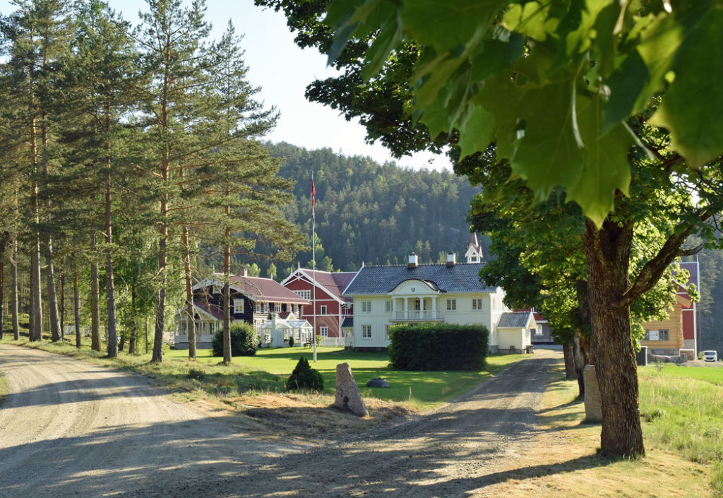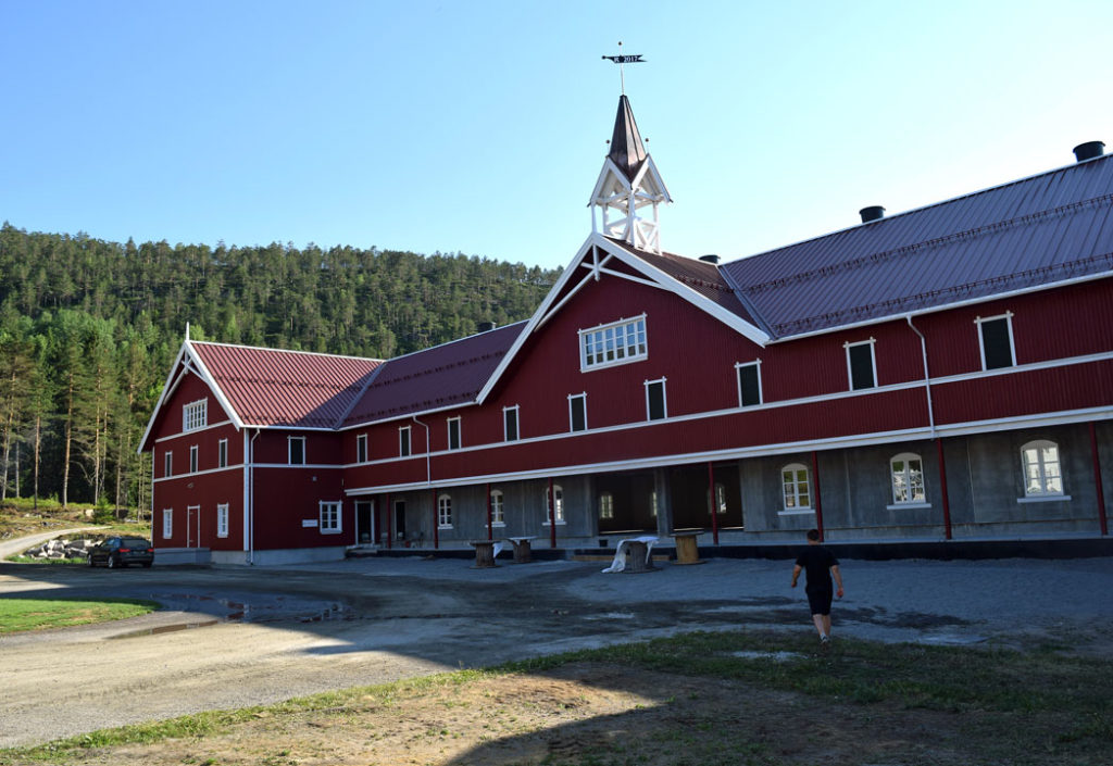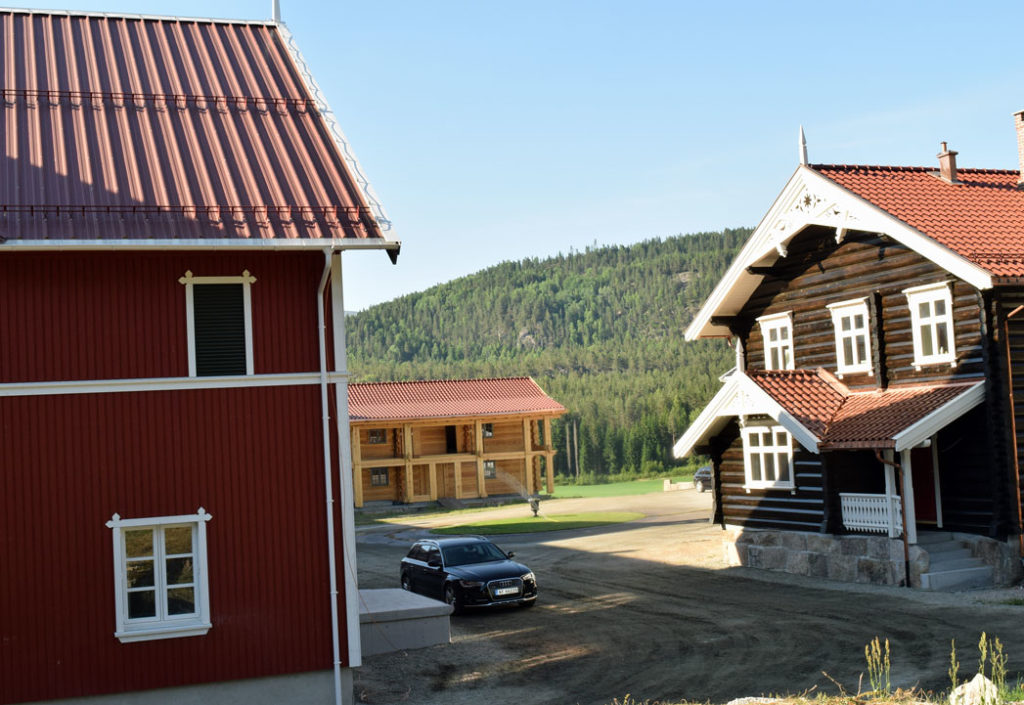 Det eneste huset som ikke brant ned, var hovedhuset. Alle vinduer i dette huset måtte byttes, men ellers slapp det unna flammene. Tømmerhuset i sveitserstil er bygd opp på den gamle grunnmuren. Utskjæringene er resultat av arkitektens kreativitet, gamle bilder og familien Rambergs historie med skogsdrift, egg, korn og hest.