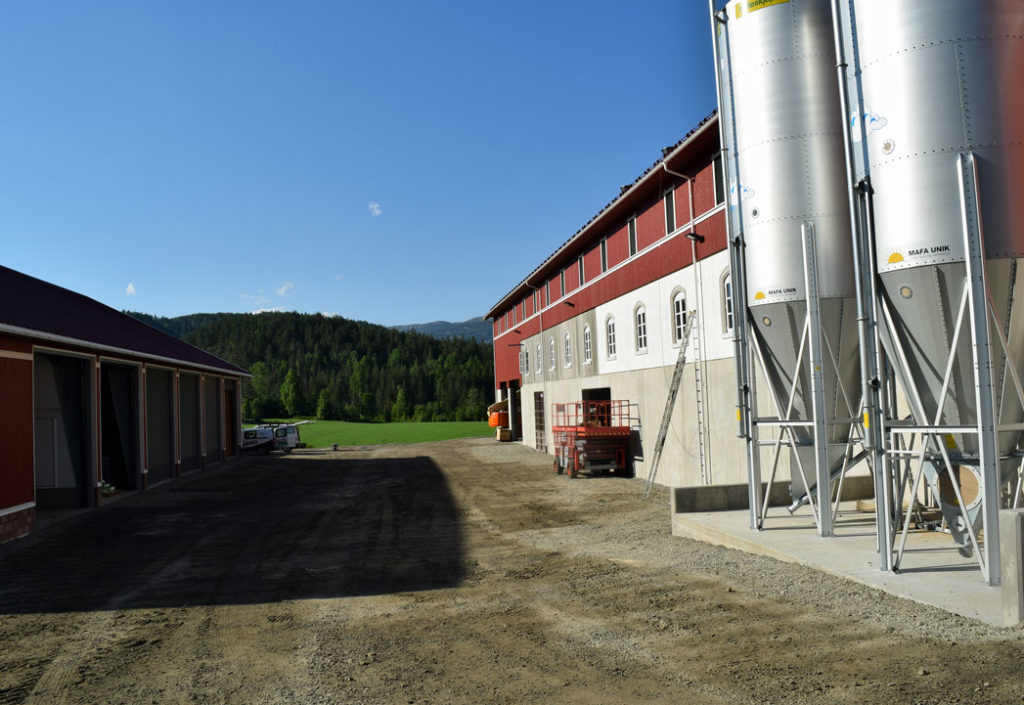 Låven er stor og staselig med klokketårn på taket. Der har 7500 høner nylig flyttet inn. Christian satser på eggproduksjon, poteter, korn og frøproduksjon ved siden av egen skog og entreprenørfirmaet Uvdal Skog.