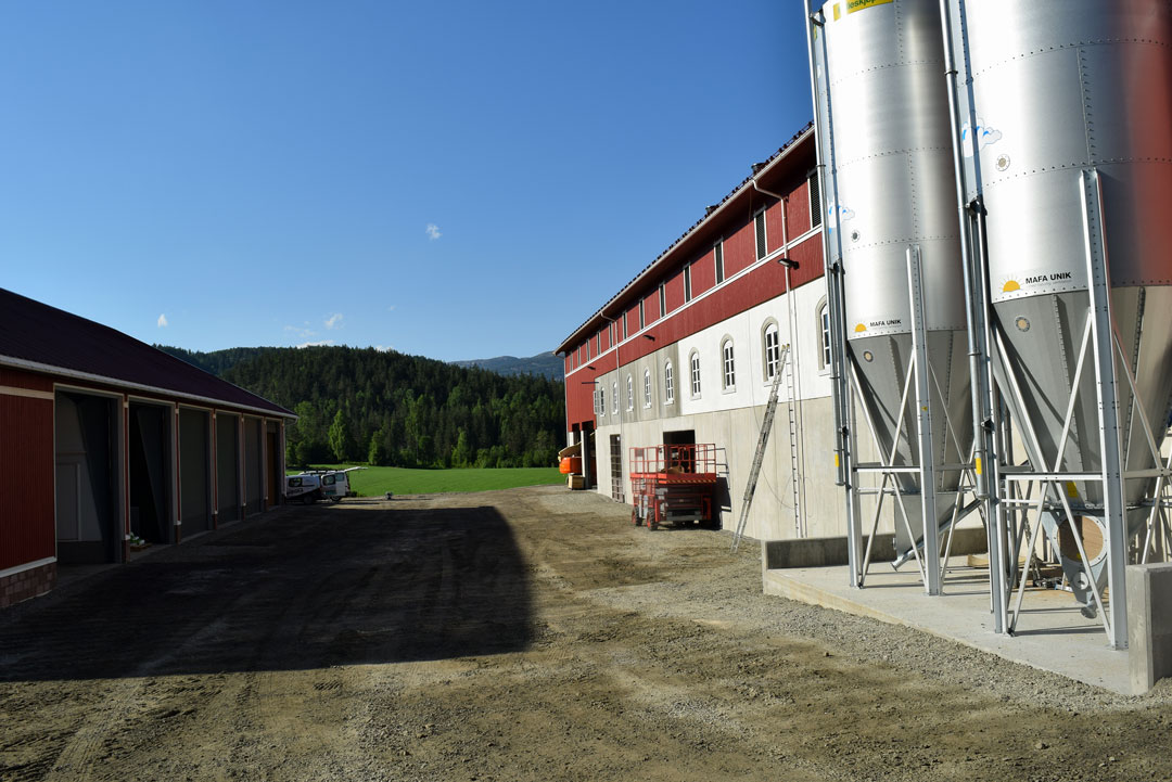 Låven er stor og staselig med klokketårn på taket. Der har 7500 høner nylig flyttet inn. Christian satser på eggproduksjon, poteter, korn og frøproduksjon ved siden av egen skog og entreprenørfirmaet Uvdal Skog.