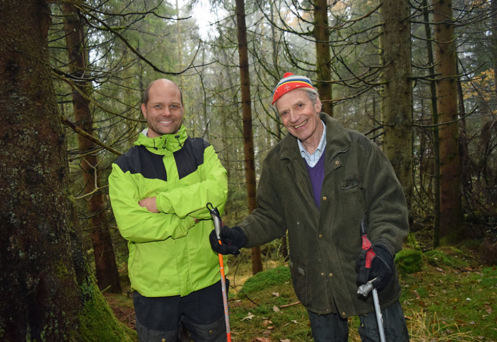 Denne dagen er også skogbrukssjef Arnar Christian Aas med og Ole Einar Grimestad, som tidlig på 1980-tallet stelte skogen i dette området.