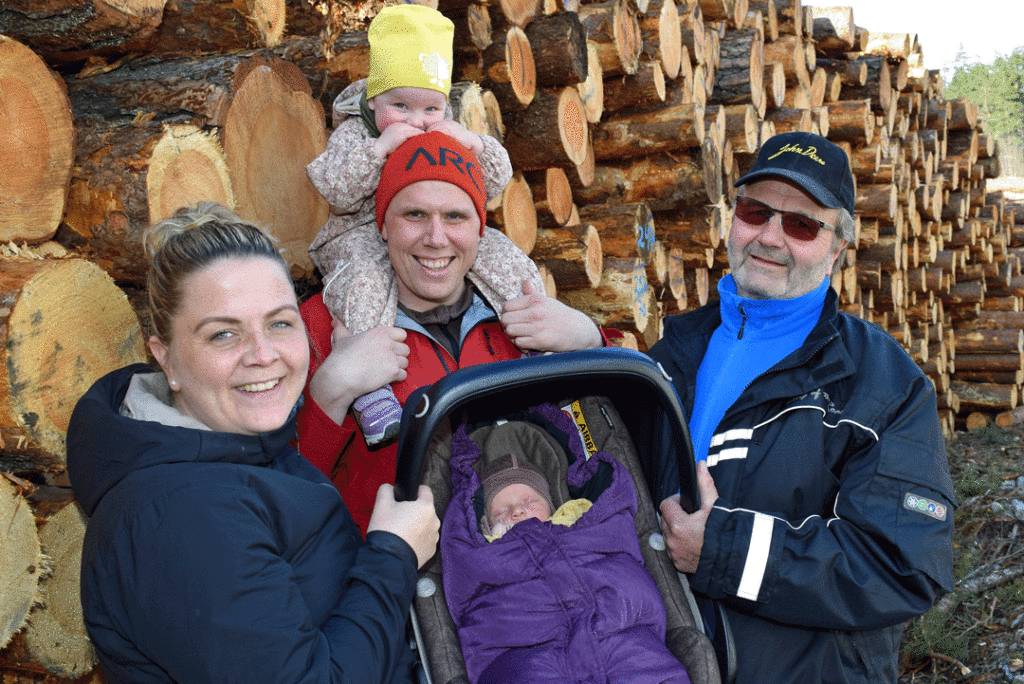 – Jeg har god hjelp. Jeg har både dreng og senior, sier skogeier Hege Bratland Hølland (32) med den nyfødte datteren i armkroken.