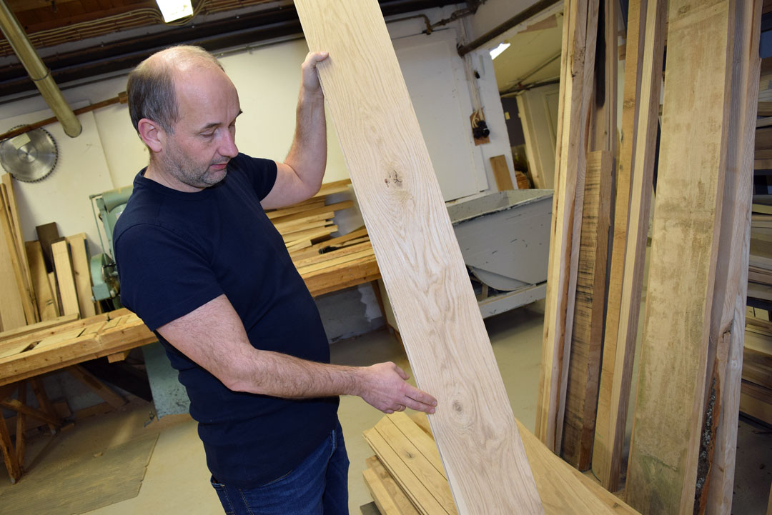 – Skogeiere ringer og sier de er stolte når de ser hva tømmeret kan bli til. Skogeierne sitter på en stor verdi. Hamran trenger mer eik og løvtrær framover, så vi håper lokale skogeiere vil levere råvaren, sier Trond, som er bedriftens styreleder og utdannet møbelsnekker.