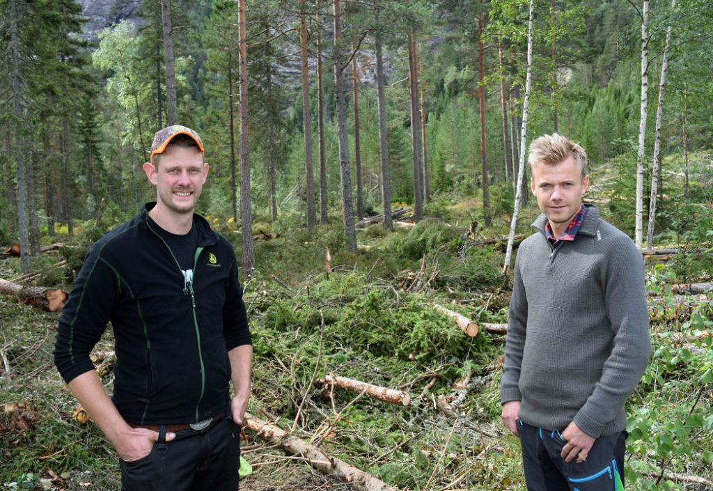 De to er ansatt i Best på skog, som utfører tynning for AT Skog i Aust-Agder. Firmaet startet opp i fjor og har 9 ansatte.