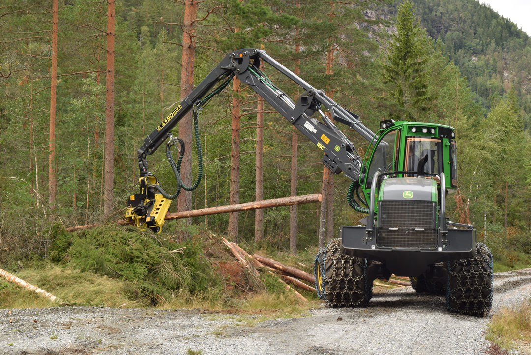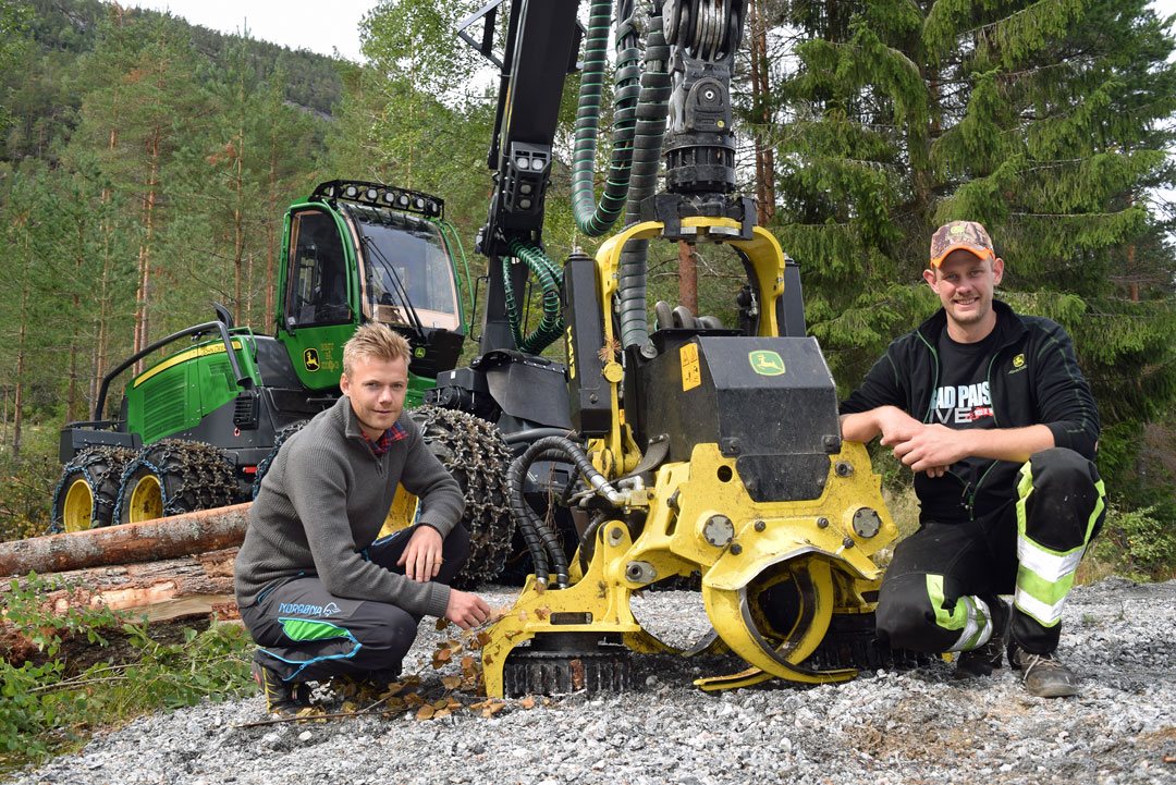 – Skogsarbeid er kjempemoro, rett og slett. Jeg husker ikke de kleine dagene på jobb, sier Knut Erlend Mevatne, som kjører tømmeret ut av skogen med lassbærer. Fra han var liten, har drømmen vært å jobbe med maskiner og skog.