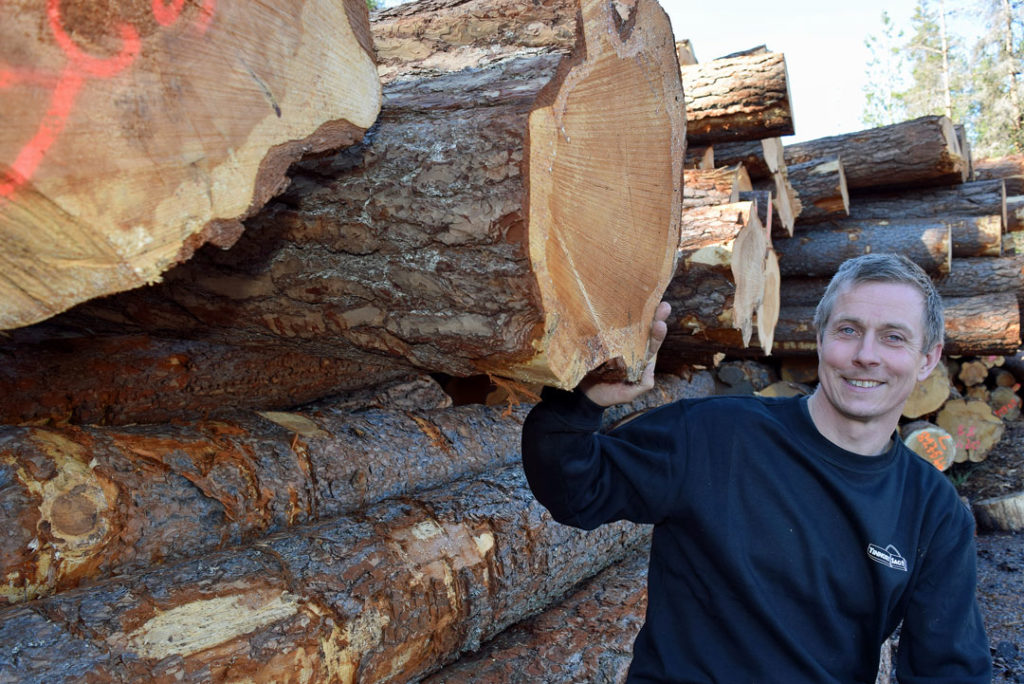Aldri før har Harald Nisi kjøpt inn så mye grovt furutømmer som nå. Tinnoset sag opplever stadig større etterspørsel etter laftetømmer.