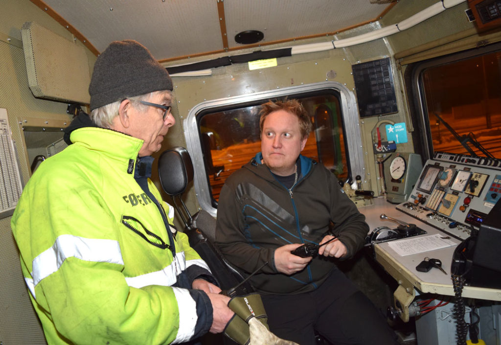 Han ankommer i bilen, som Hans Kristian kjørte til Drammen i natt. Toget skal nå returnere til Drammen, der 17 vogner til skal festes på før retur til Sverige.