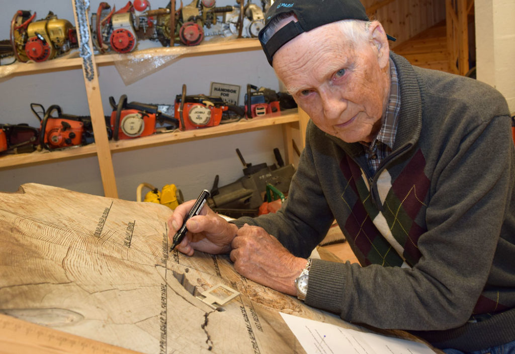 – Jeg er veldig historisk interessert, bekrefter Jarl. Denne interessen, kombinert med en skogfaglig bakgrunn som begynte i 1946 og ble avviklet i 1990, førte til telleoppdraget. Alderen på furua ble første gang fastsatt av fylkesskogmesteren Jørund Midttun i 1957.