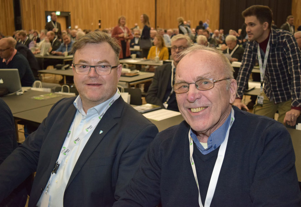 – Det var også moro å høre om alt skogen kan brukes til. En veldig interessant dag, sa Kostveit (til v), som har skogeiendom i Tokke. Han var på konferansen med kameraten Jan Terje Blakstad.