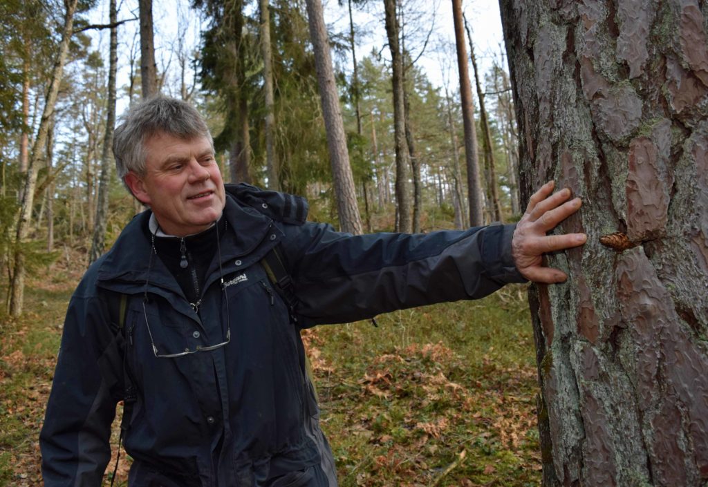 – Det siste tømmeret jeg drev ut på denne halvøya, var 1500 m³ i 2004. Da ble maskinene fraktet med lekter, tømmeret fløtet 4 kilometer og deretter lastet opp på brygge med mobil tømmerkran. På 1980-tallet levde jeg av skogsdrift, men det er ikke mulig i dag. Interessen for skog arvet jeg av faren min, forklarer skogeieren, mens han går opp skråninger og ned gamle traktorveier.