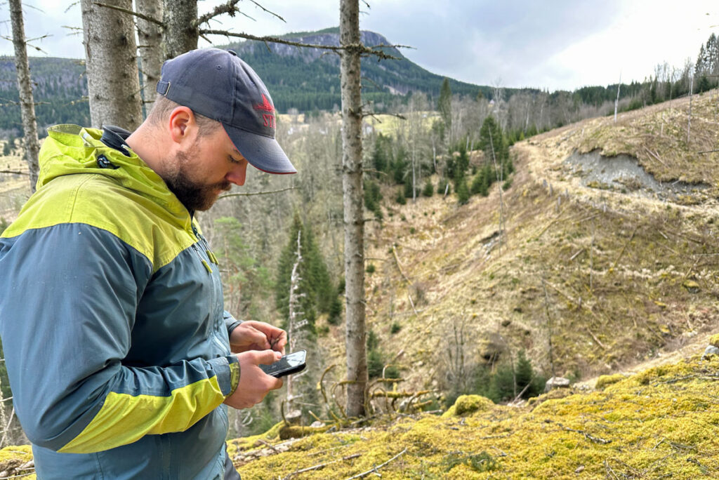 Håvard er ofte ute i egen skog og sjekker skogbruksplanen underveis.