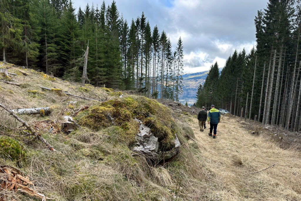 – Jeg er veldig lettet over at Håvard har overtatt. Han er grundig og fornuftig. Jeg er stolt av ham, sier mor mens vi går oppover mot flere felt som viser skog i ulike faser. Et er gjenplantet etter hogst. Et annet er i god vekst etter hogst i 2017. Et nytt felt ble hogd i 2023 av Håvard selv. Han leverte 150 kubikk med selvhogde trær.