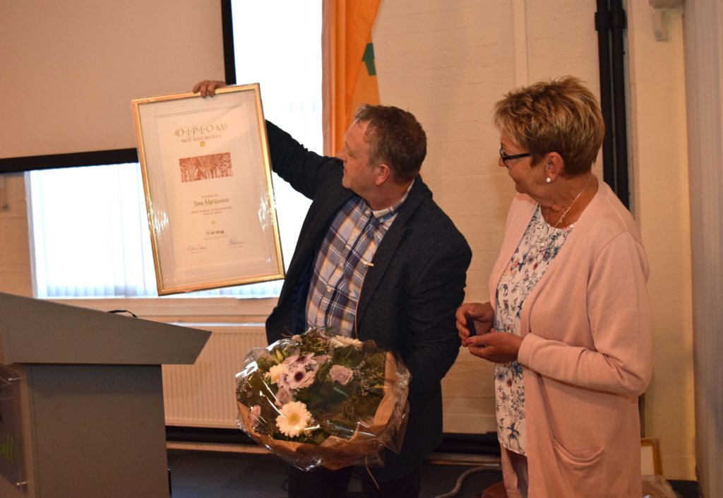 Knut Aas, som gikk ut av styret i fjor og mottok hedersmerke i gull, fikk diplom på etterskudd.