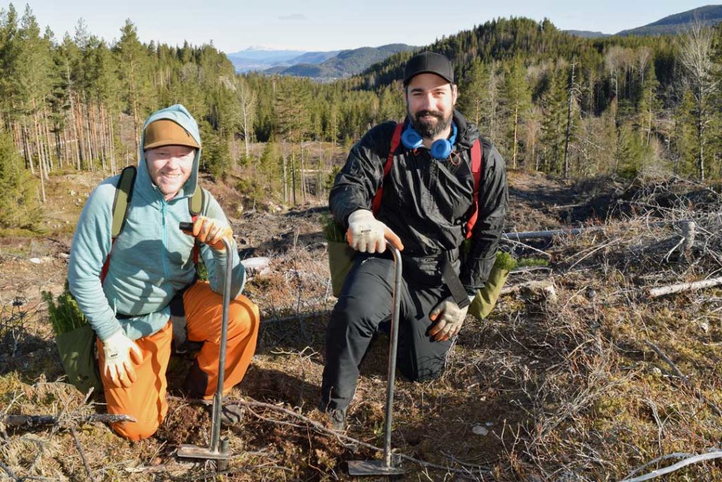 Stratos Lordanakis (34) og Mats Sletteng (33) er nyrekrutterte skogplantere, som er i full gang med årets sesong.